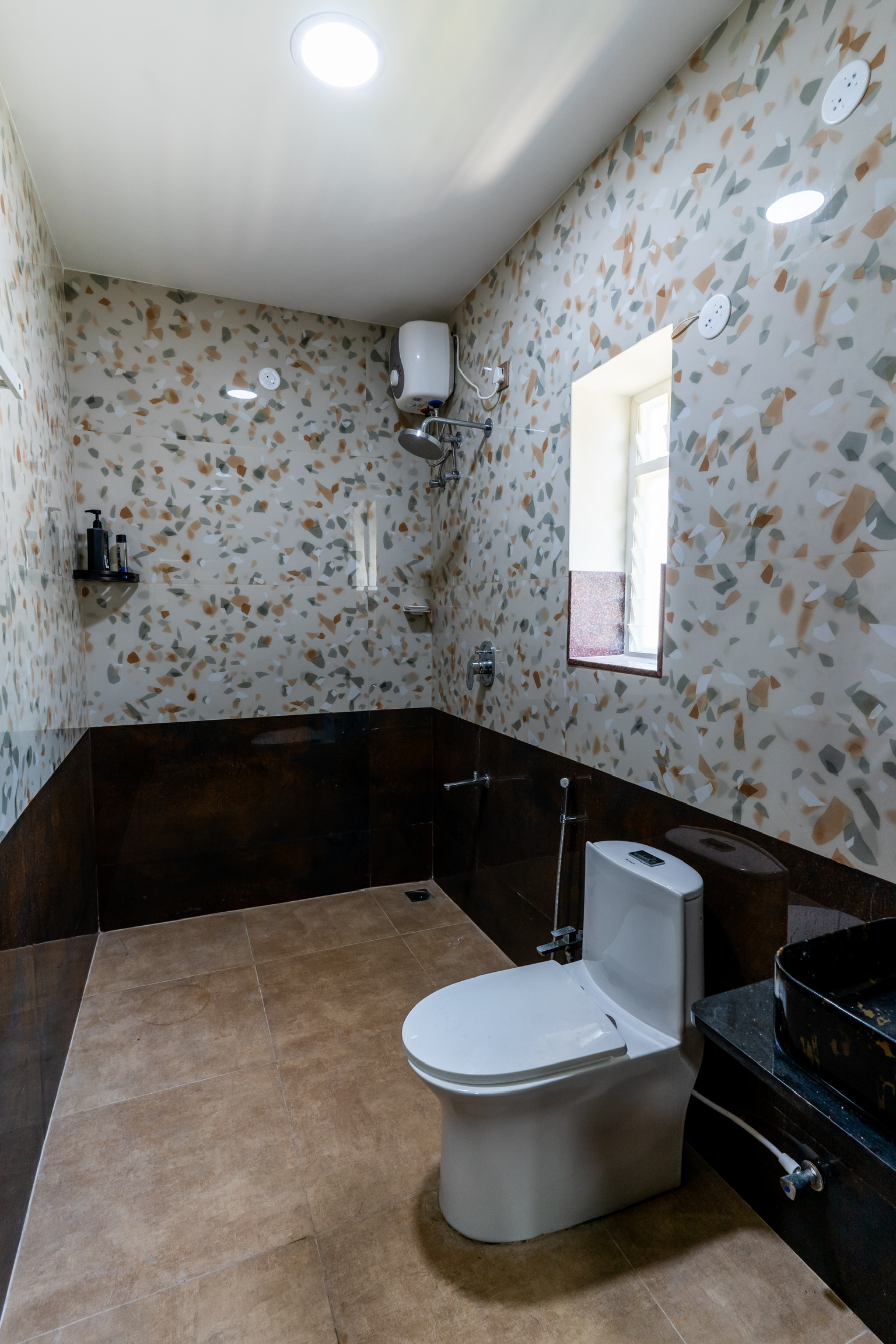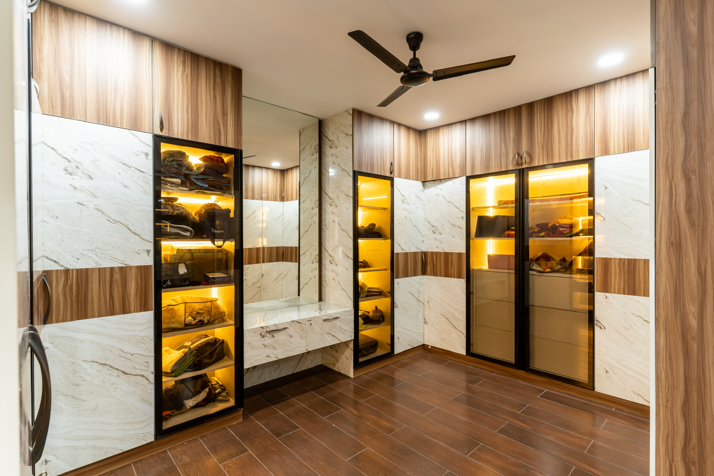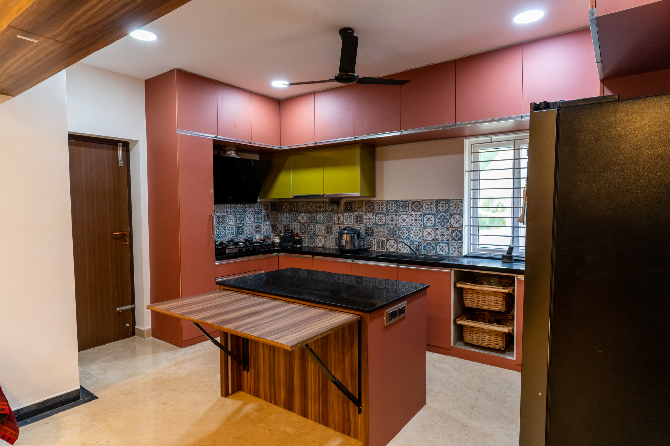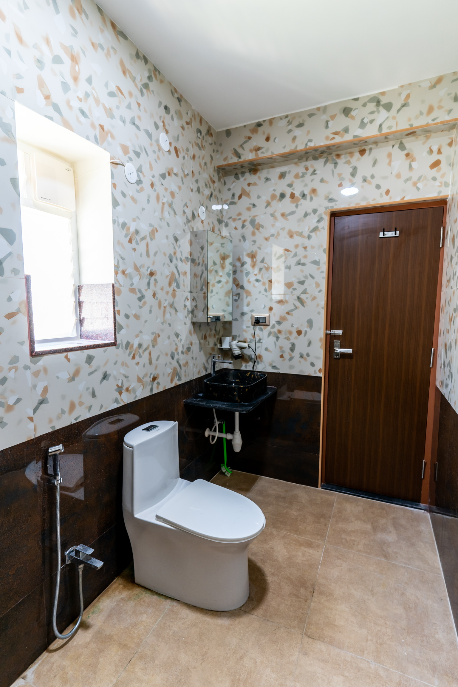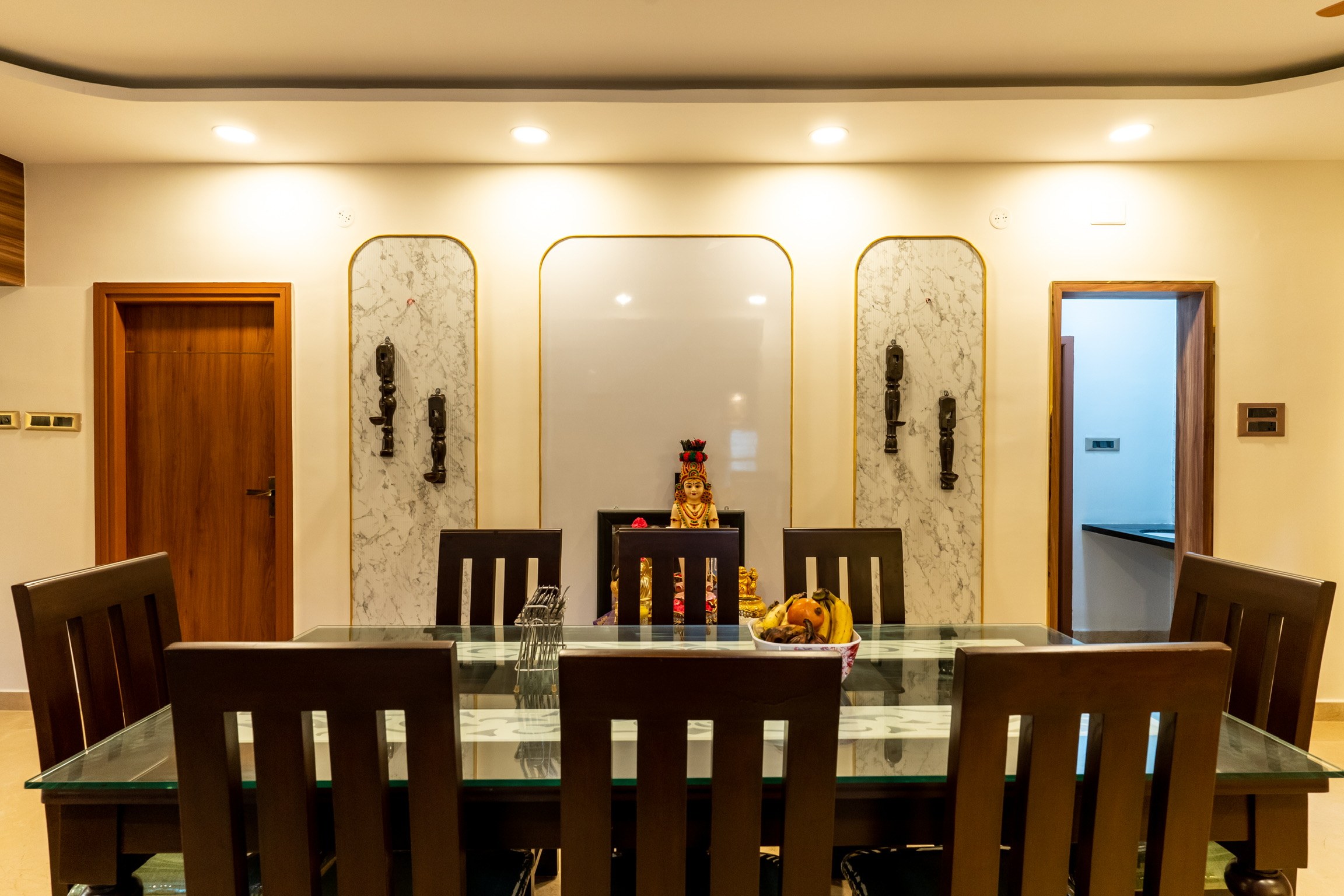 The ground floor, spread at the rear end of the plot has an office space with a meeting space, a pantry and the maid’s quarters.