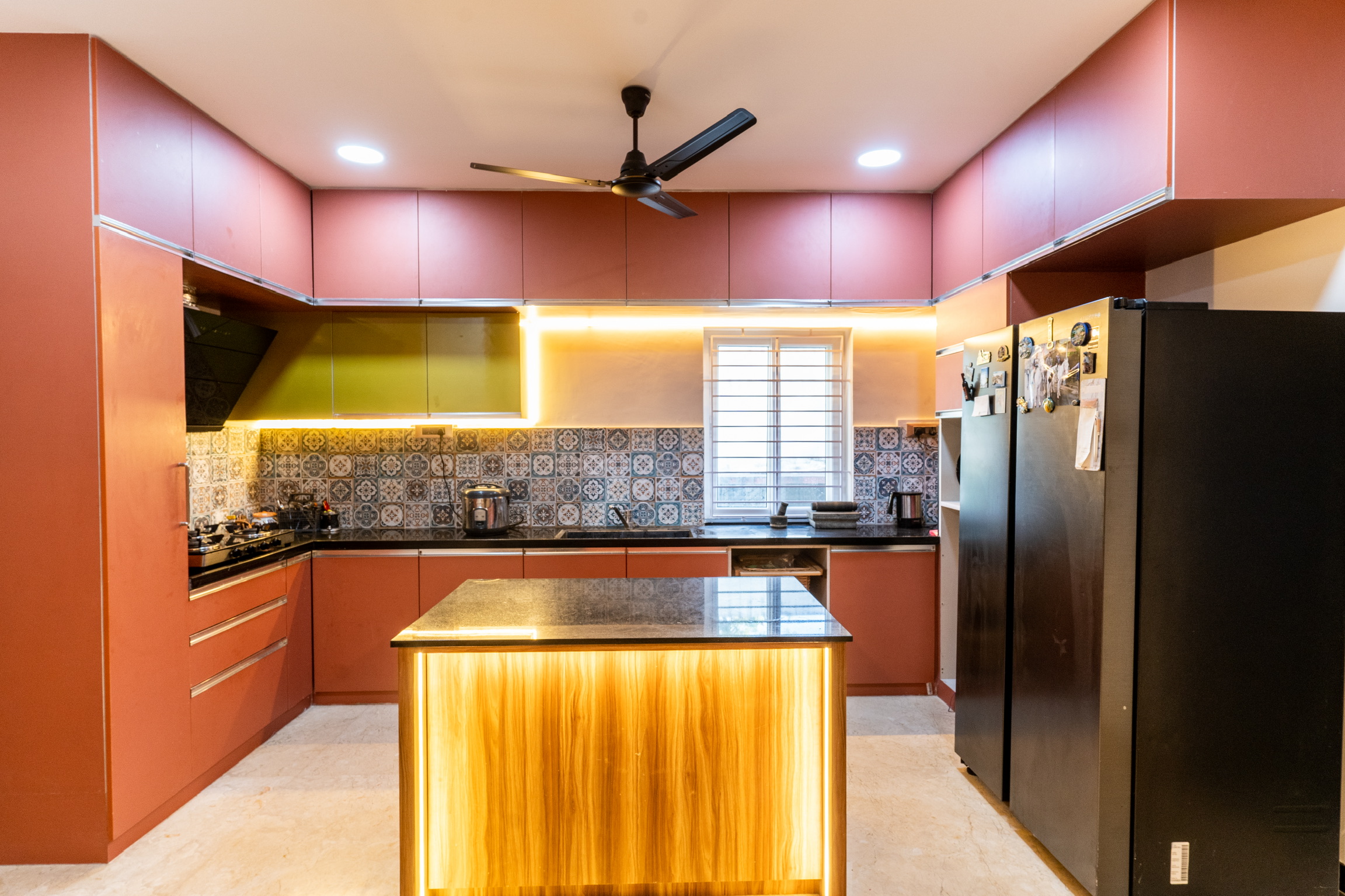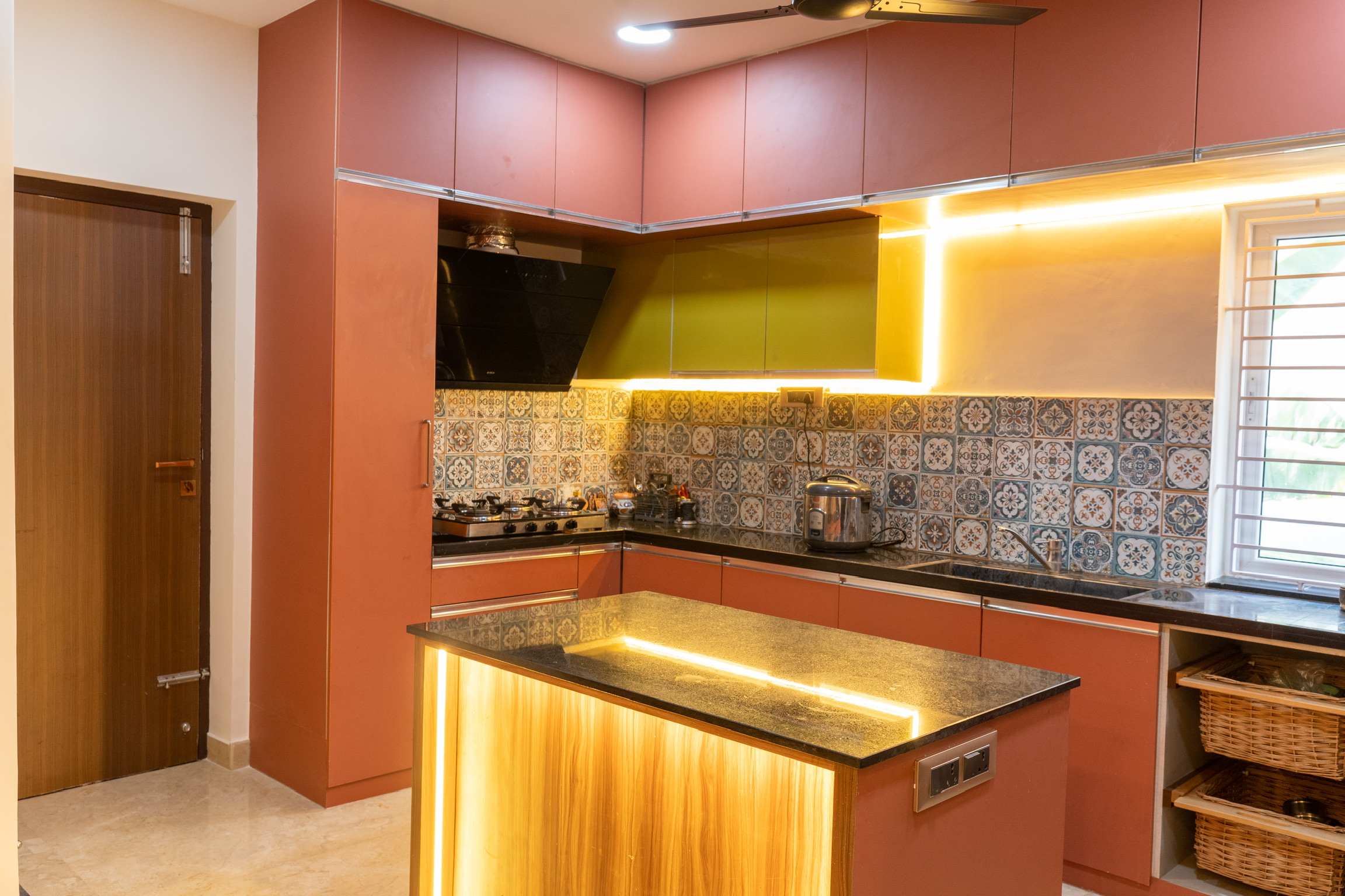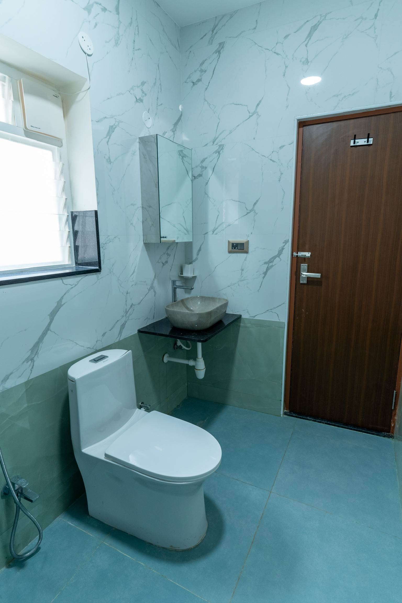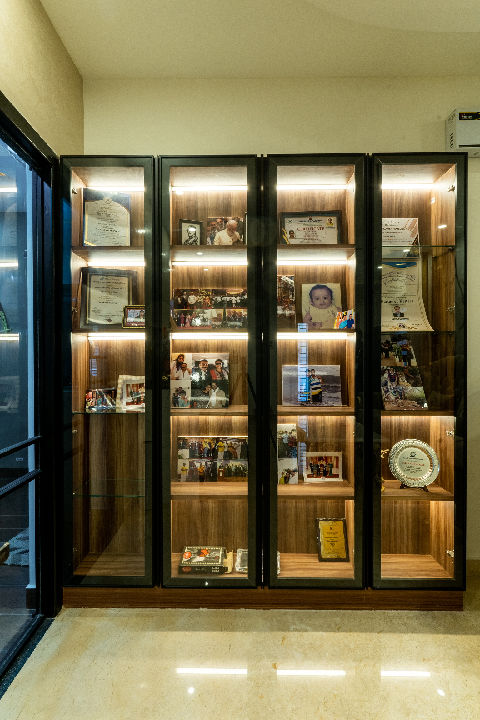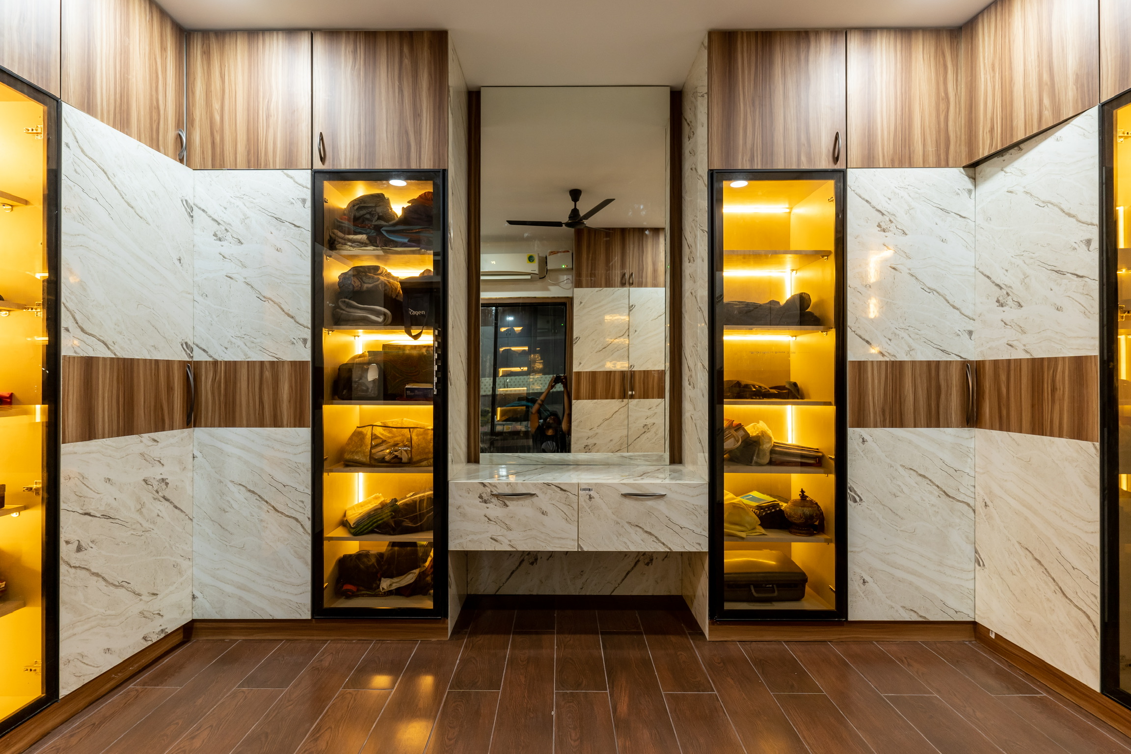 The ground floor, spread at the rear end of the plot has an office space with a meeting space, a pantry and the maid’s quarters.