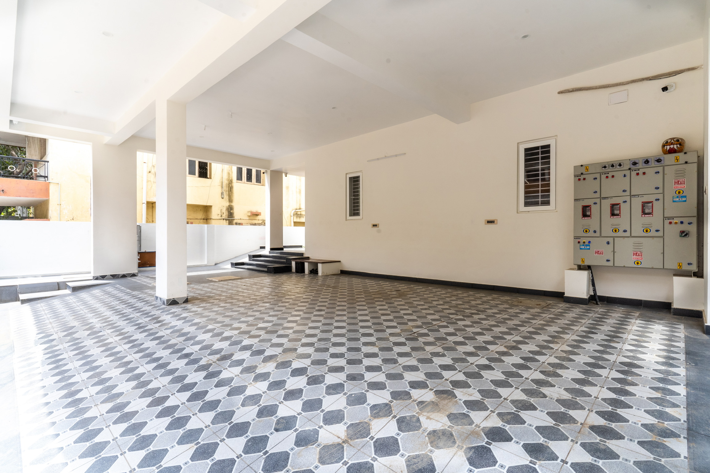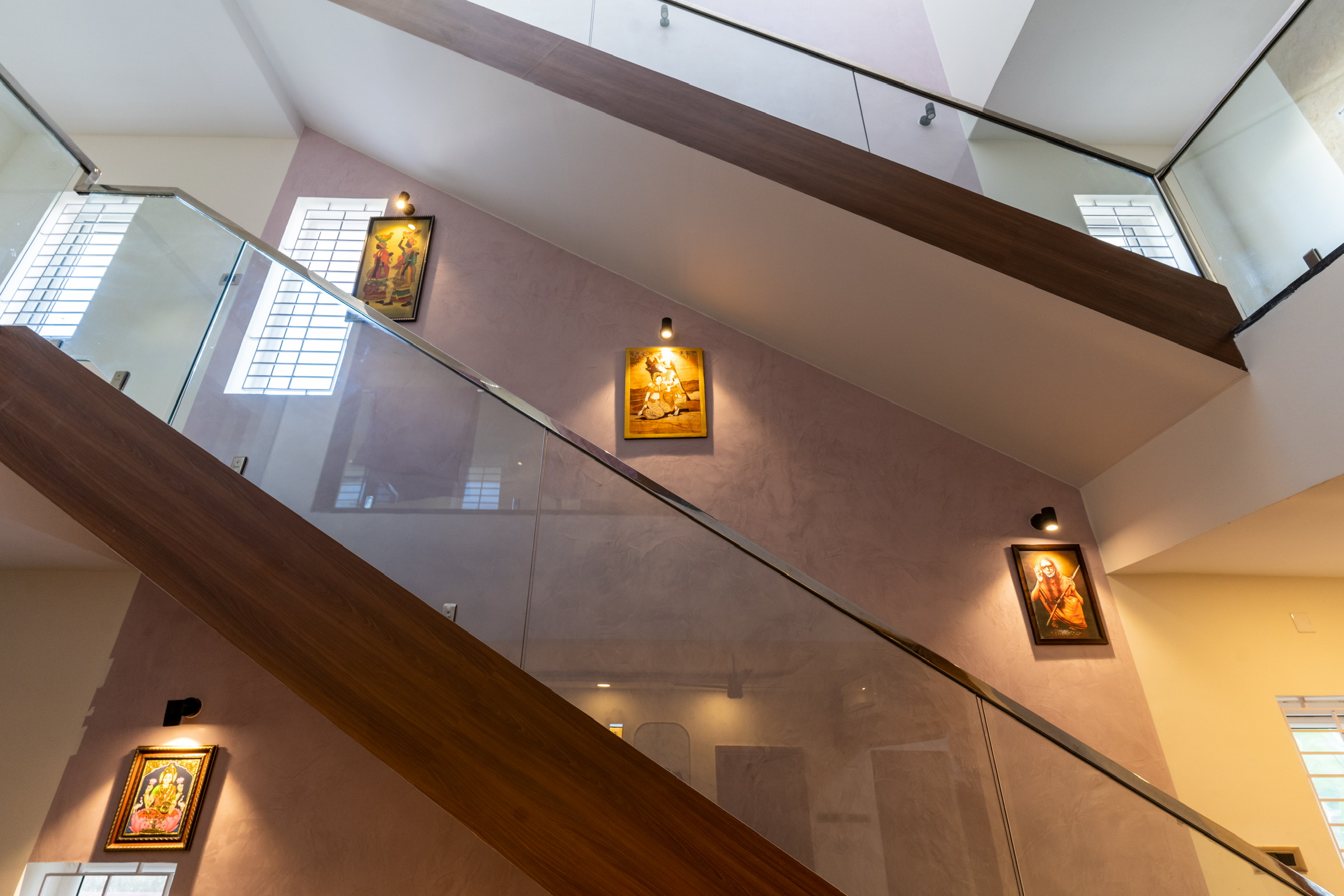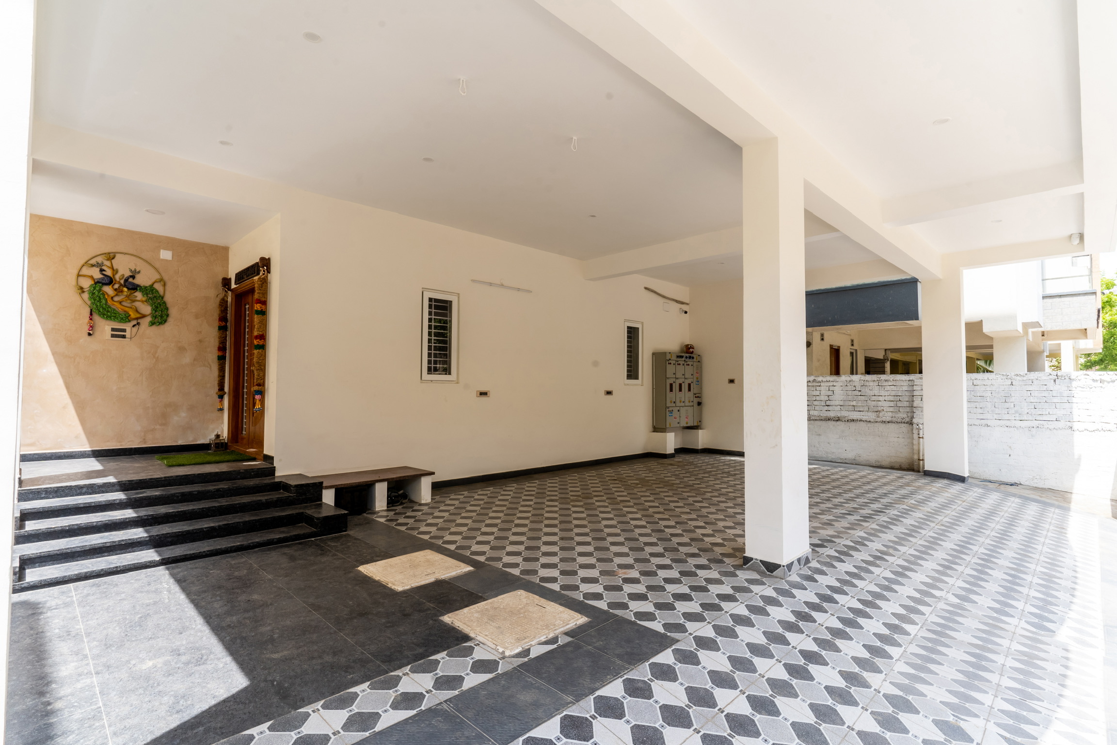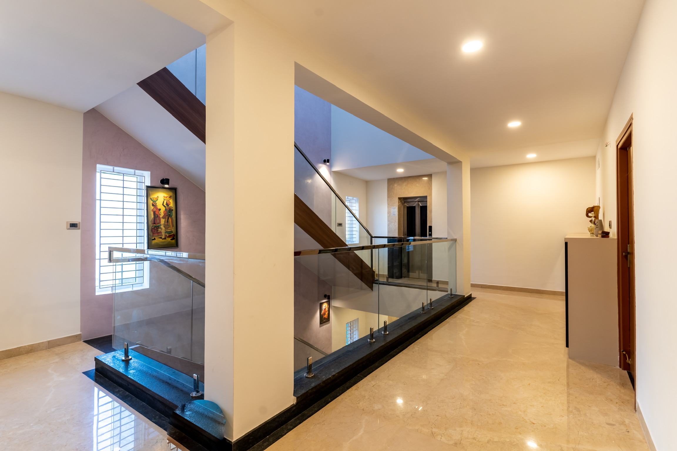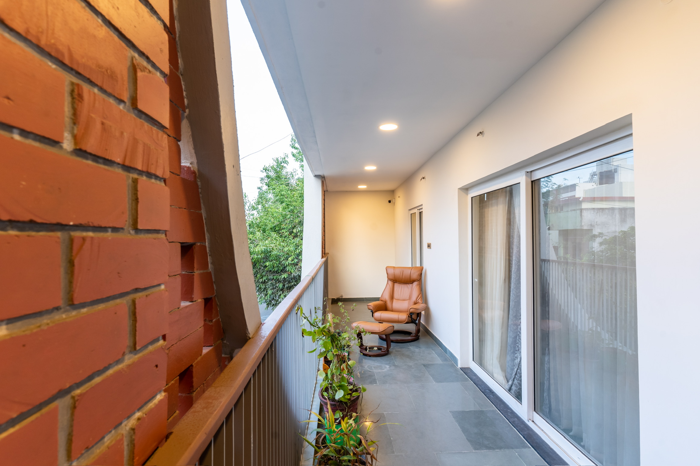 The second floor has three bedrooms with balconies facing the roadside and well ventilated and lit with tall windows.
