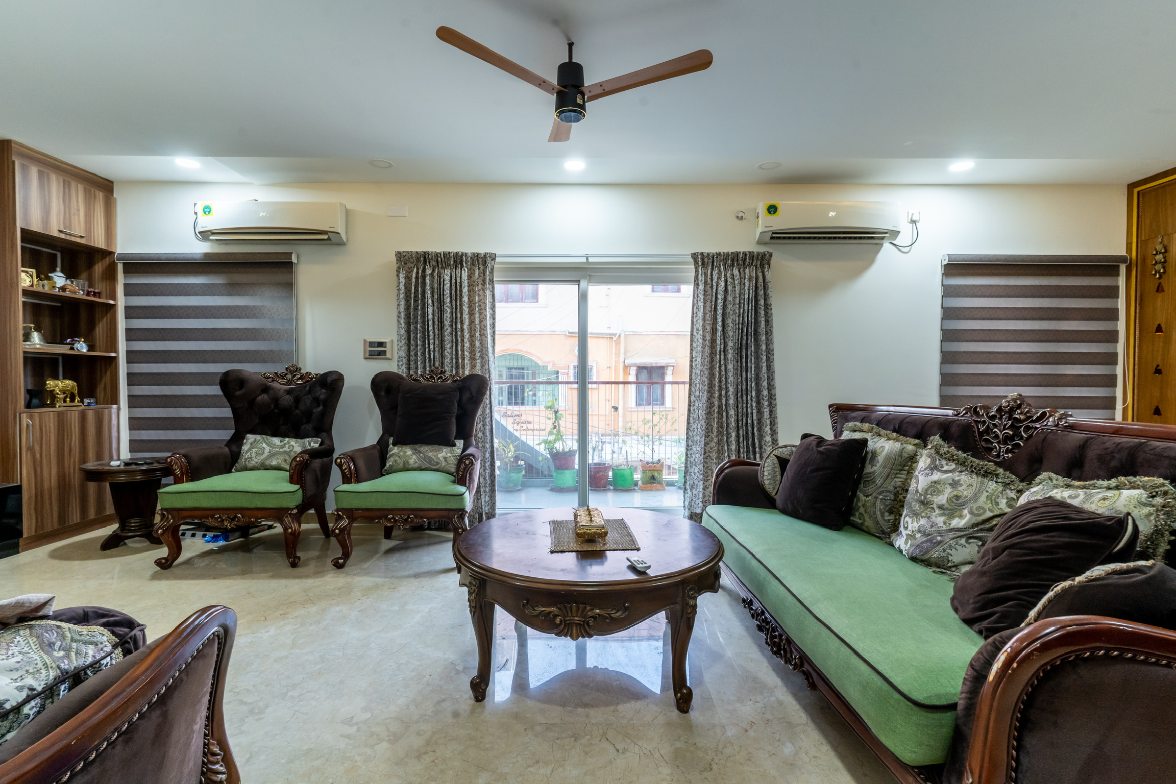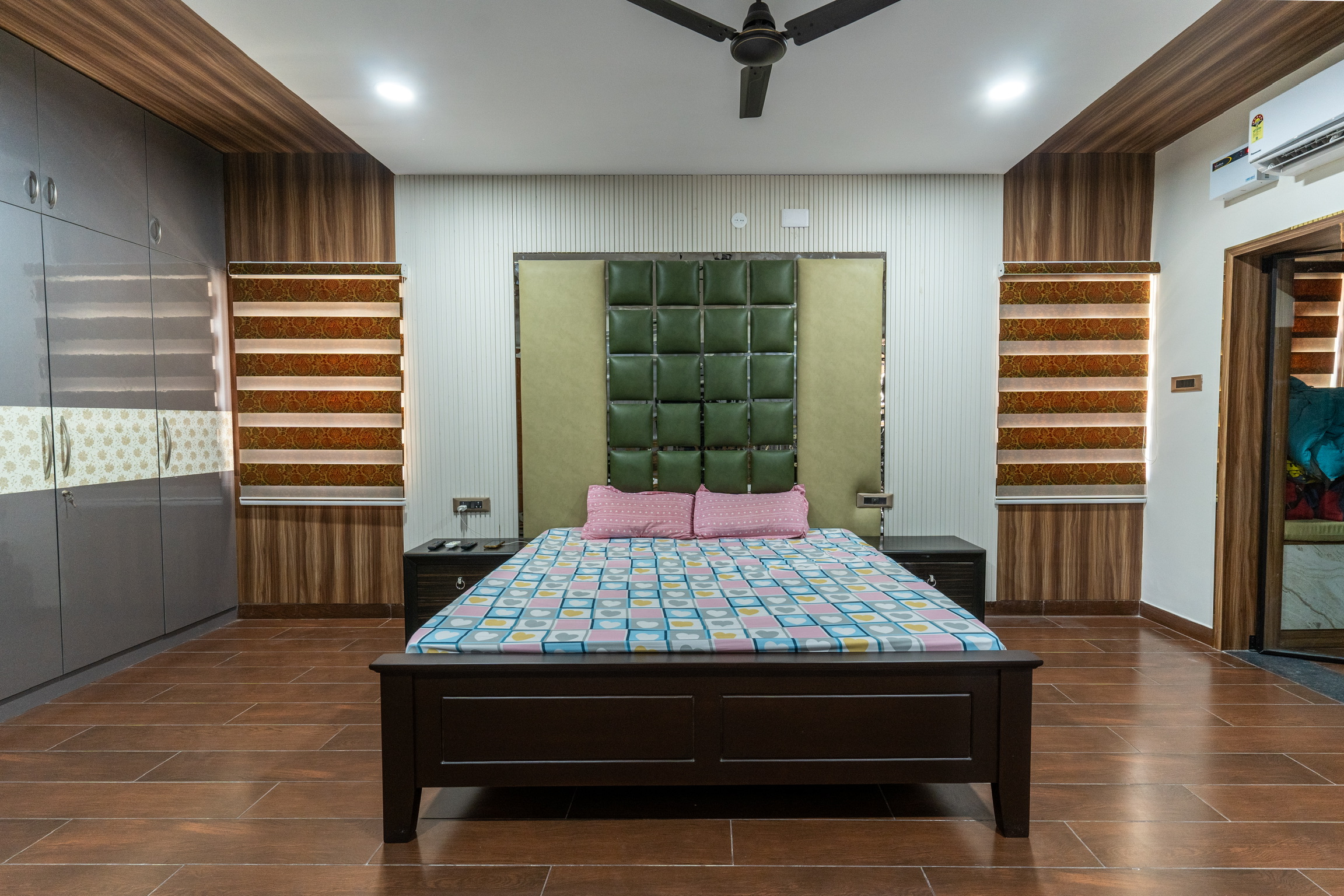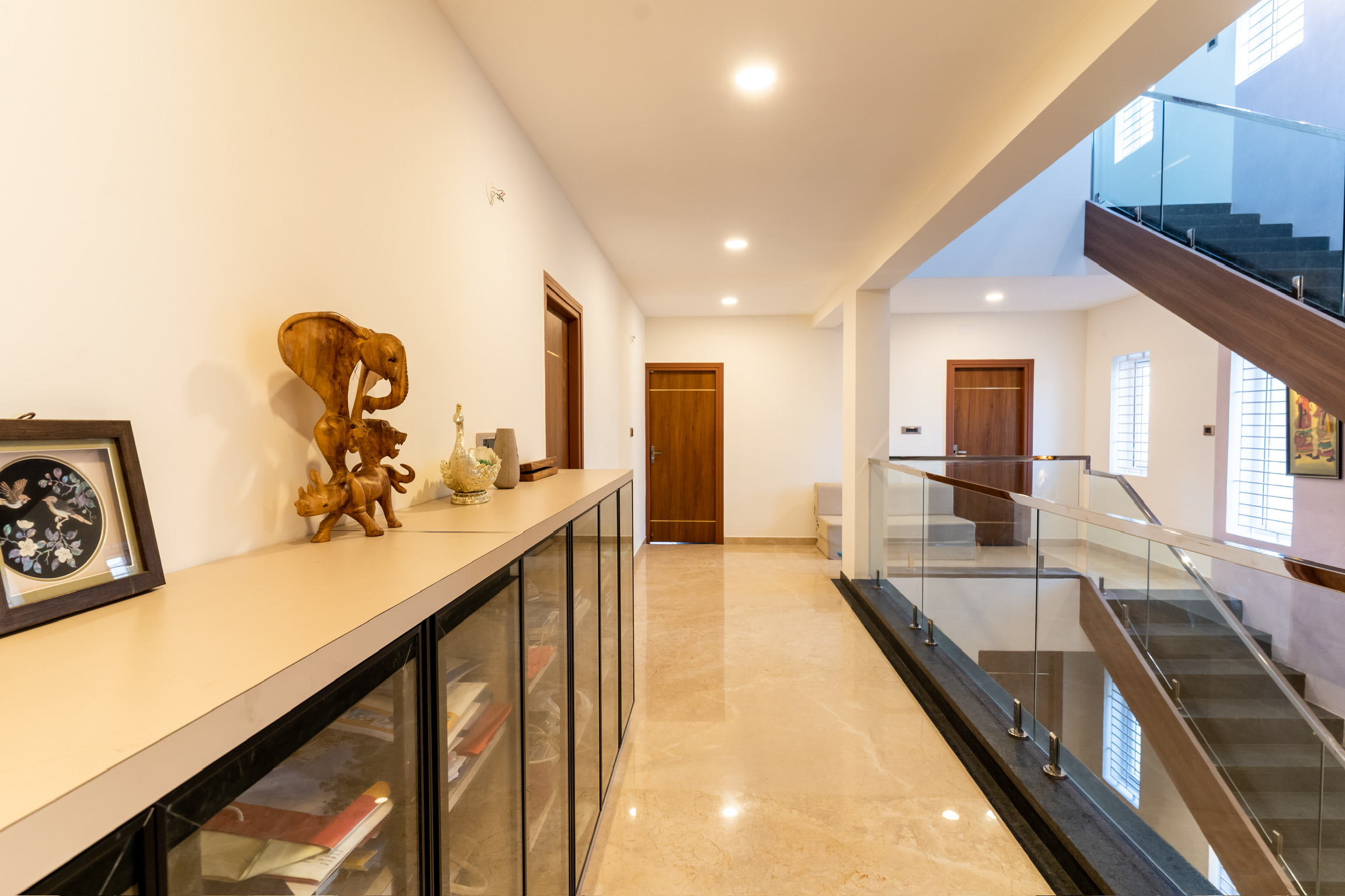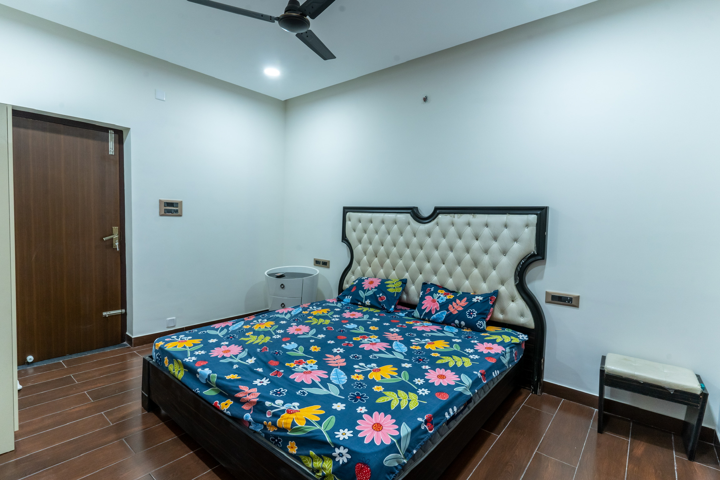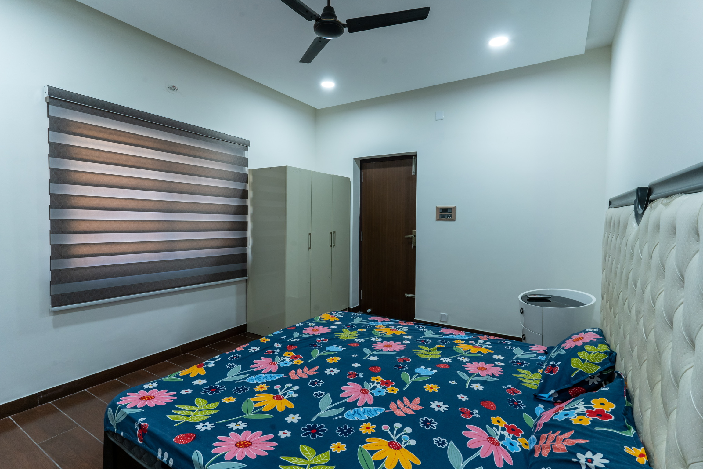 The second floor has three bedrooms with balconies facing the roadside and well ventilated and lit with tall windows.