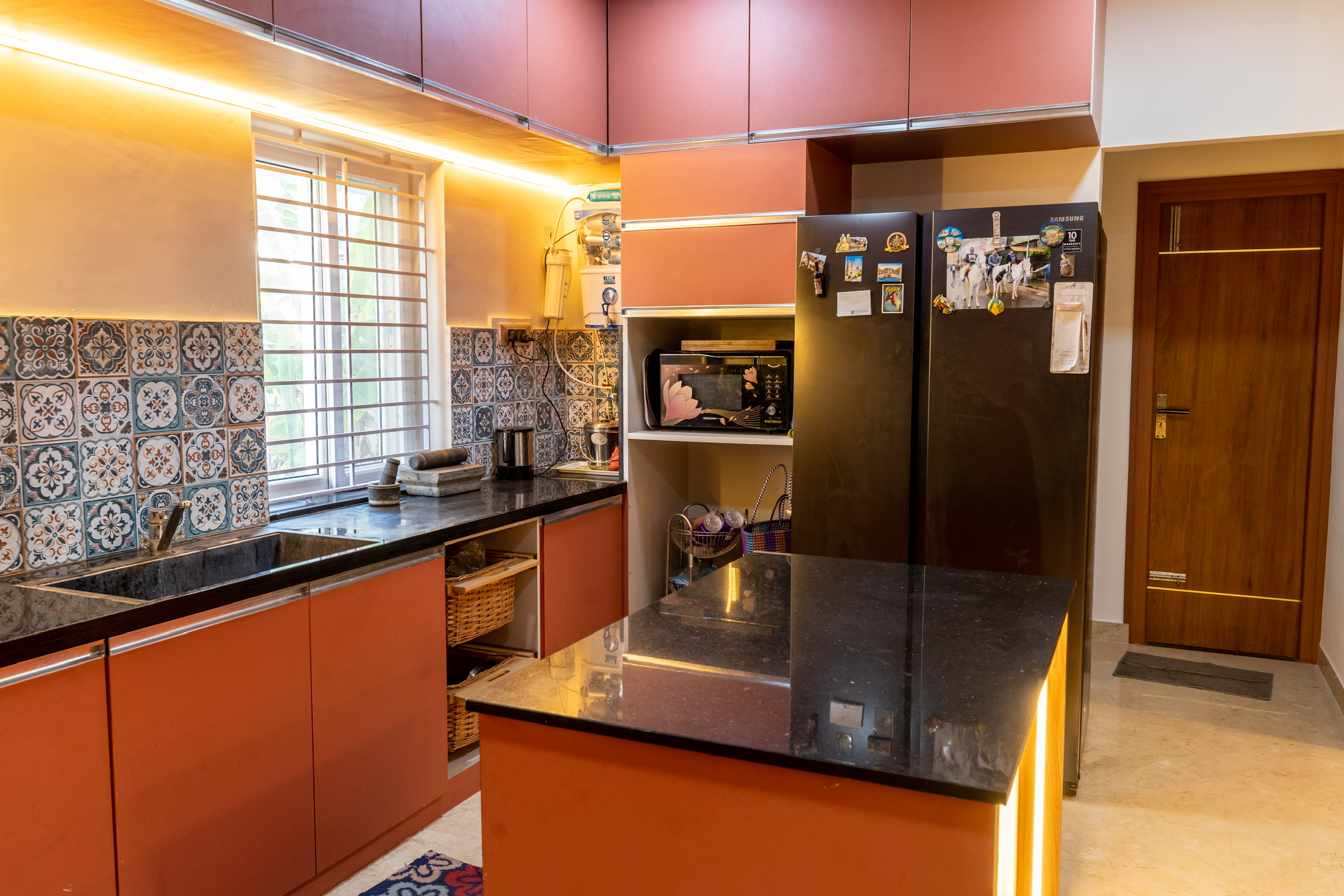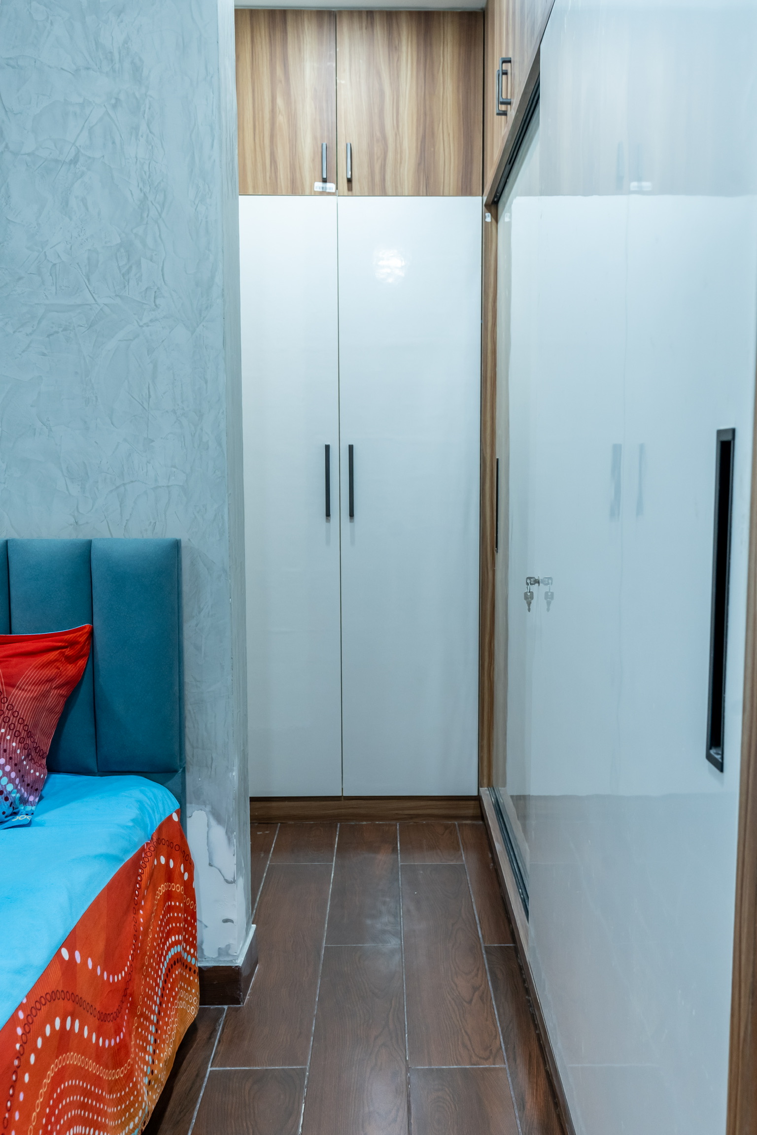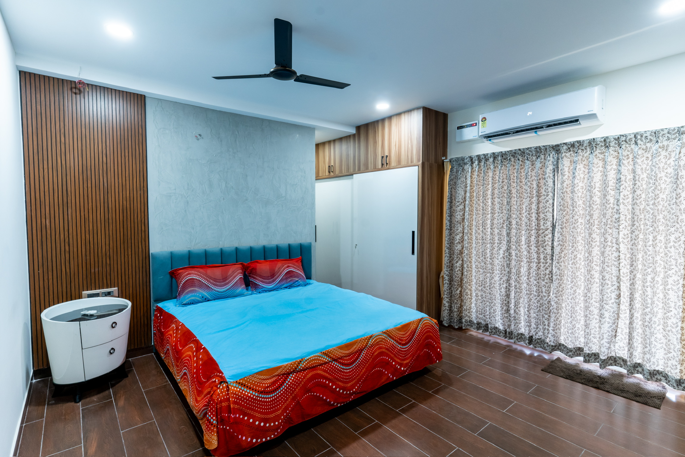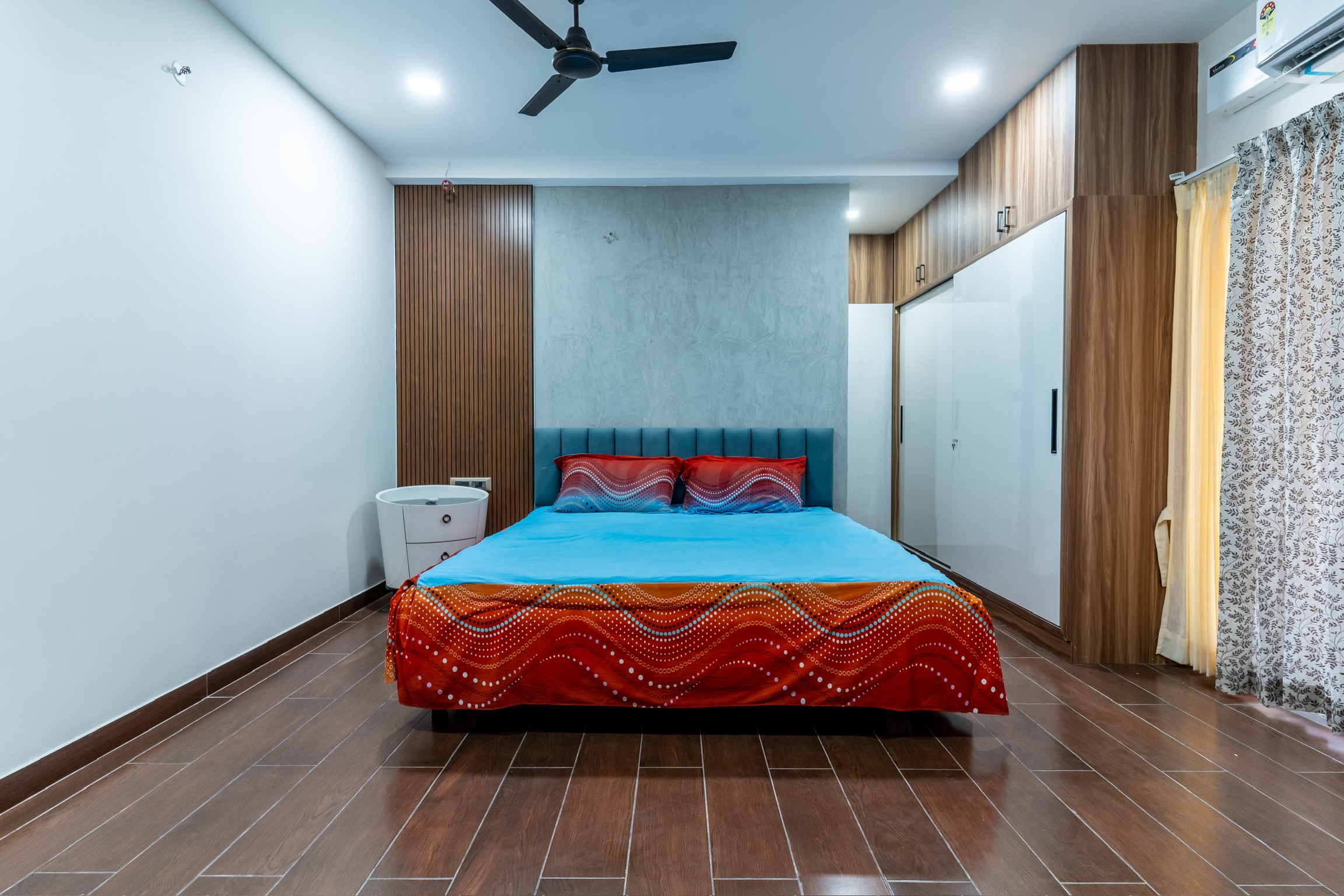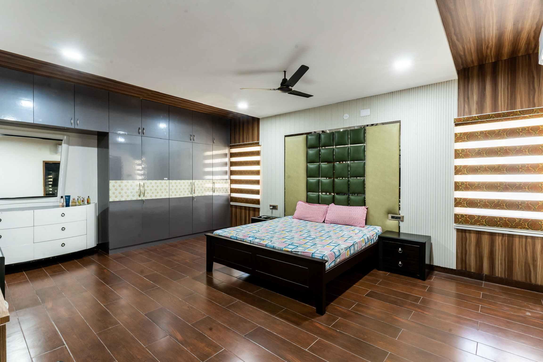 The second floor has three bedrooms with balconies facing the roadside and well ventilated and lit with tall windows.